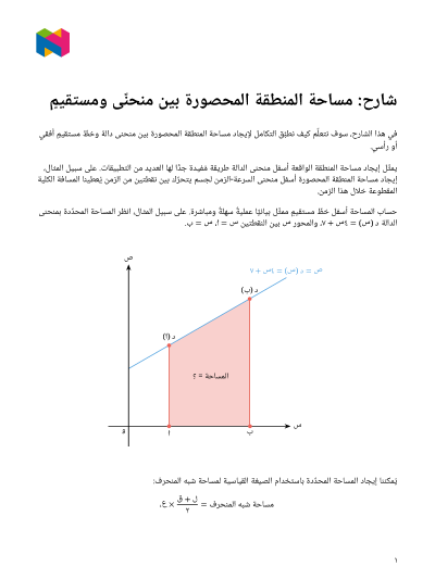في هذا الدرس، سوف نتعلَّم كيف نطبِّق التكامل لإيجاد المساحة بين منحنى دالة وخط مستقيم أفقي أو رأسي.