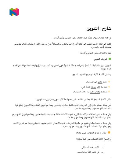 في هذا الدرس، سوف نتعلَّم كيف نتعرَّف معنى التنوين، ونُميِّز أنواعه.
