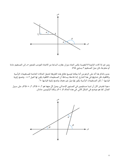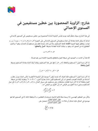 في هذا الدرس، سوف نتعلَّم كيف نُوجد قياس الزاوية الحادة المحصورة بين خطين مستقيمين في المستوى الإحداثي.