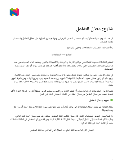 في هذا الدرس، سوف نتعلَّم كيف نَصِف معدَّل التفاعل الكيميائي، ونوضِّح تأثير الحرارة على معدَّل التفاعل باستخدام نظرية التصادم.