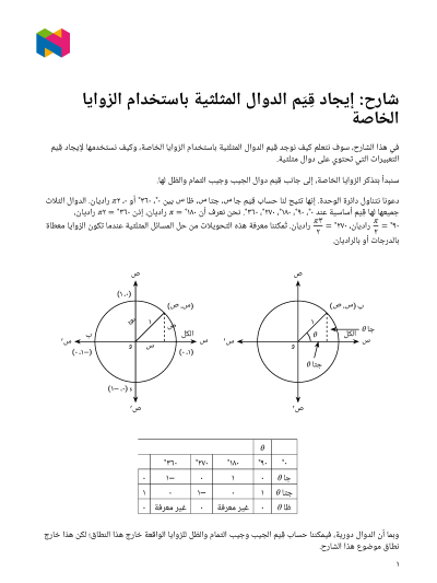 في هذا الدرس، سوف نتعلَّم كيف نُوجِد قِيَم الدوال المثلثية باستخدام الزوايا الخاصة، وكيف نستخدمها لإيجاد قِيَم التعبيرات التي تحتوي على دوال مثلثية.