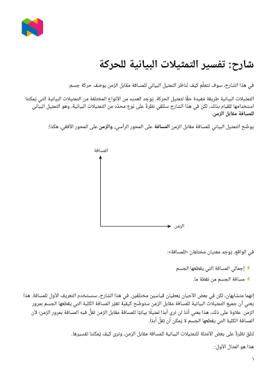 في هذا الدرس، سوف نتعلَّم كيف نناظر التمثيل البياني للمسافة مقابل الزمن بوصْف حركة جسم.