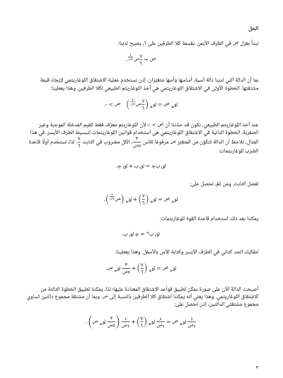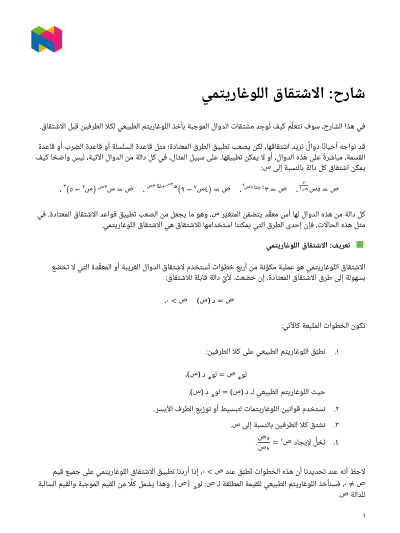 في هذا الدرس، سوف نتعلَّم كيف نُوجِد مشتقات الدوال الموجبة بأخذ اللوغاريتم الطبيعي لكلا الطرفين قبل الاشتقاق.