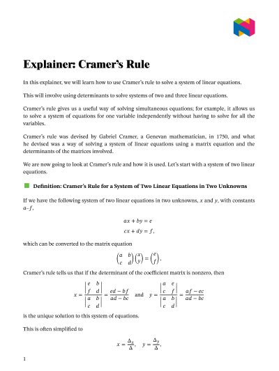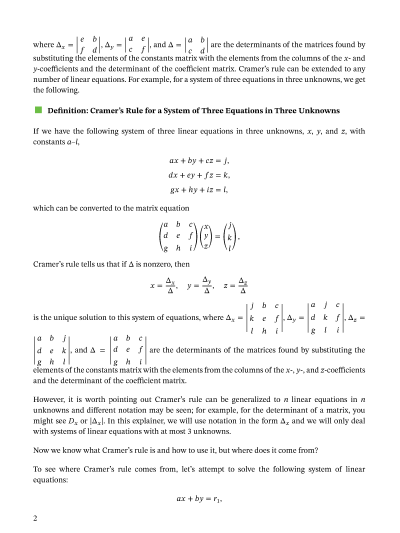 In this lesson, we will learn how to use Cramer’s rule to solve a system of linear equations.