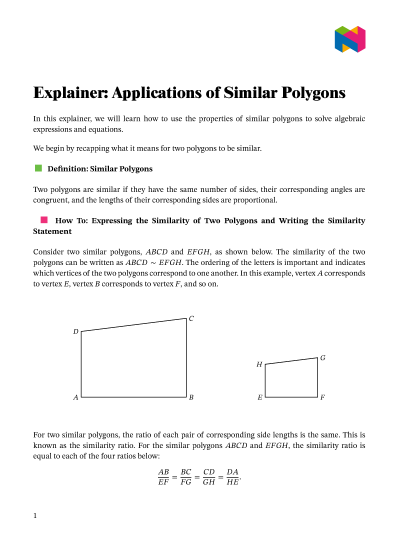 In this lesson, we will learn how to use the properties of similar polygons to solve algebraic expressions and equations.