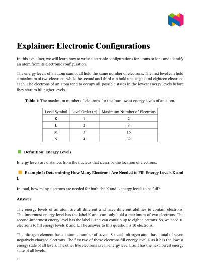 In this lesson, we will learn how to write electronic configurations for atoms or ions and identify an atom from its electronic configuration.