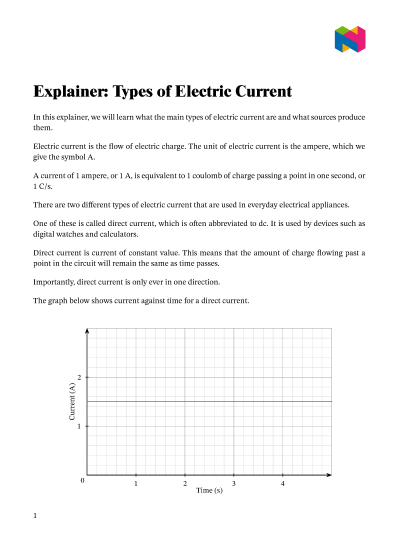 In this lesson, we will learn what the main types of electric current are and what sources produce them.