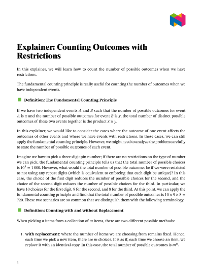In this lesson, we will learn how to count the number of possible outcomes when we have restrictions.