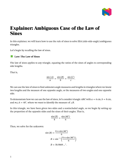 In this lesson, we will learn how to use the rule of sines to solve SSA (side-side-angle) ambiguous triangles.