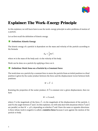 In this lesson, we will learn how to use the work–energy principle to solve problems of motion of a particle.