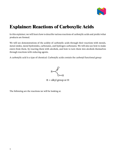 In this lesson, we will learn how to describe various reactions of carboxylic acids and predict what products are formed.