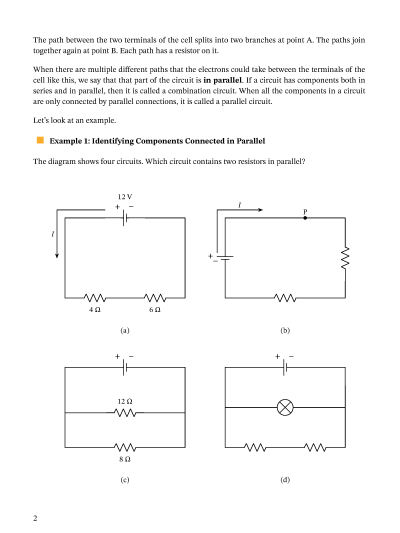 In this lesson, we will learn how to calculate the potential difference, current, and resistance at different points within simple parallel circuits.