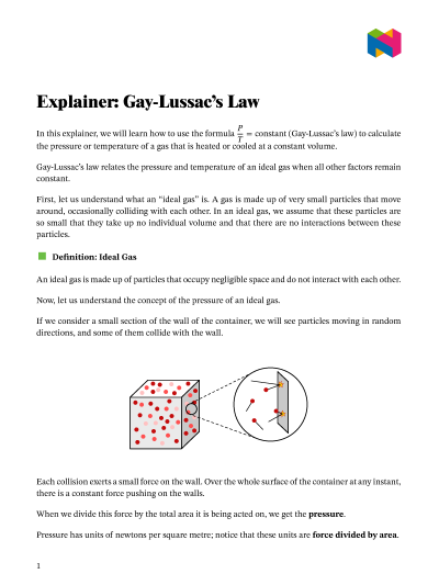 In this lesson, we will learn how to use the formula P/T = constant (Gay-Lussac’s law) to calculate the pressure or temperature of a gas that is heated or cooled at a constant volume.