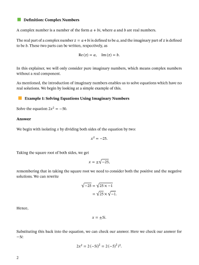 In this lesson, we will learn how to evaluate, simplify, and multiply pure imaginary numbers and solve equations over the set of pure imaginary numbers.