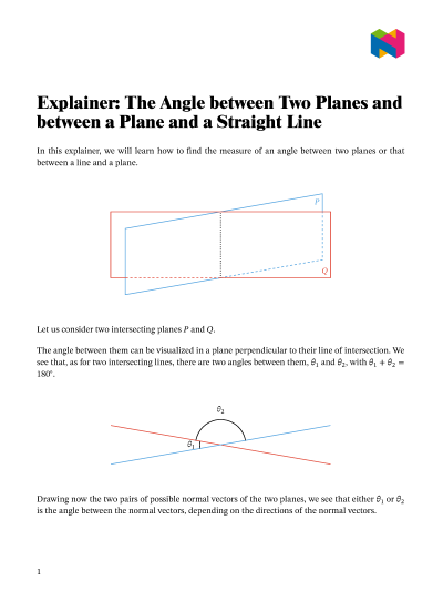 In this lesson, we will learn how to find the measure of an angle between two planes or that between a line and a plane.