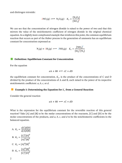 In this lesson, we will learn how to construct and calculate the equilibrium constant for concentration.
