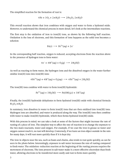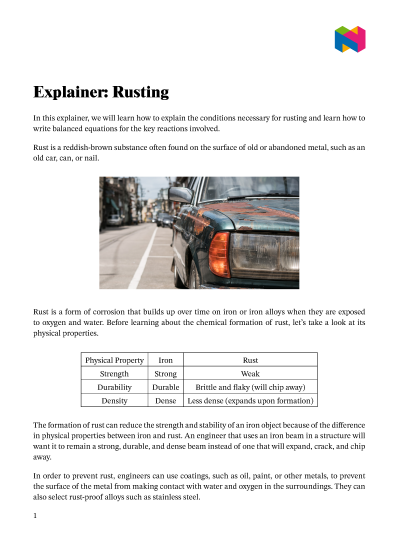 In this lesson, we will learn how to explain the conditions necessary for rusting and learn how to write balanced equations for the key reactions involved.