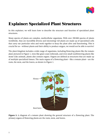 In this lesson, we will learn how to describe the structure and function of specialized plant structures.
