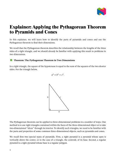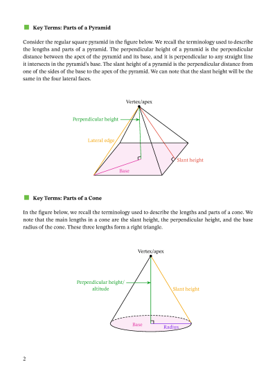 In this lesson, we will learn how to identify the parts of pyramids and cones and use the Pythagorean theorem to find their dimensions.