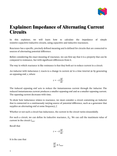 In this lesson, we will learn how to calculate the impedance of simple resistive-capacitive-inductive circuits, using capacitive and inductive reactances.