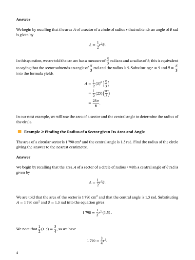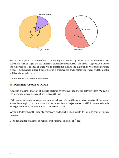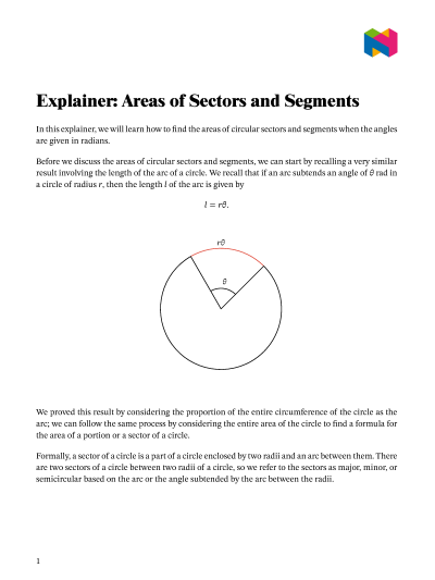 In this lesson, we will learn how to find the areas of circular sectors and segments when the angles are given in radians.