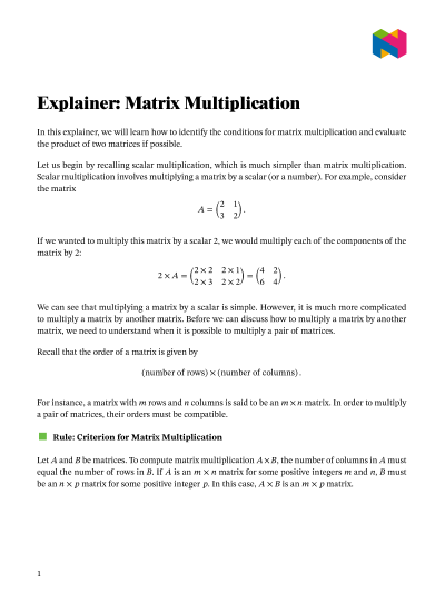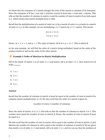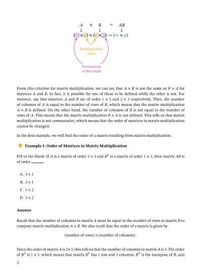 In this lesson, we will learn how to identify the conditions for matrix multiplication and evaluate the product of two matrices if possible.