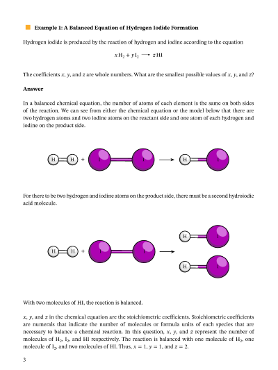 In this lesson, we will learn how to determine the stoichiometry of a reaction equation by balancing the numbers of atoms in the reactants and products.
