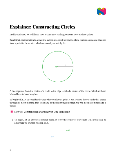 In this lesson, we will learn how to construct circles given one, two, or three points.
