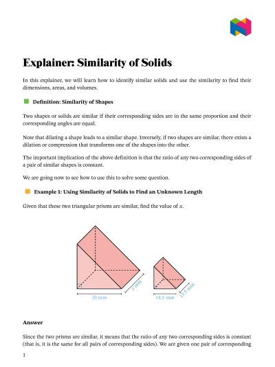 In this lesson, we will learn how to identify similar solids and use similarity to find their dimensions, areas, and volumes.