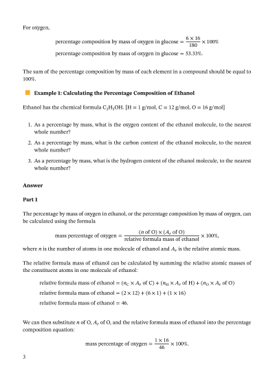 In this lesson, we will learn how to calculate the percentage composition of a substance using chemical formulas or the masses of constituent elements.