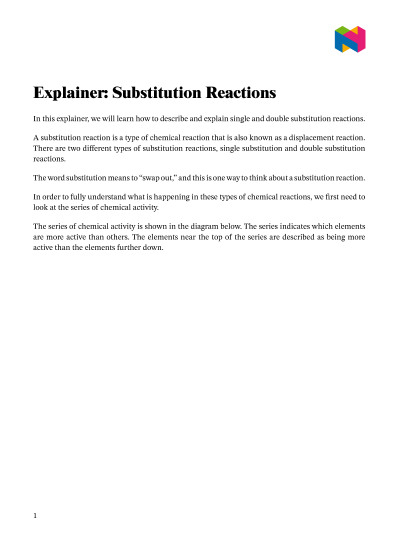 In this lesson, we will learn how to describe and explain single and double substitution reactions.
