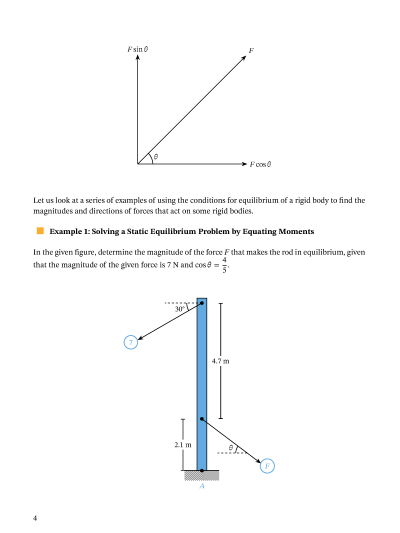 In this lesson, we will learn how to solve problems about the equilibrium of rigid bodies in 2D where the sum of forces and the sum of moments equal zero.