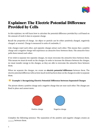 In this lesson, we will learn how to calculate the potential difference provided by a cell based on the amount of work it does to separate charge.