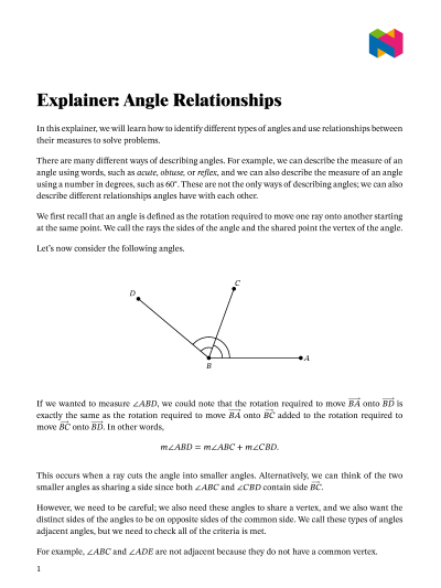 In this lesson, we will learn how to identify different types of angles and use relationships between their measures to solve problems.