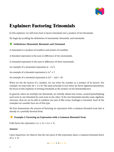 In this lesson, we will learn how to factor trinomials into a product of two binomials.