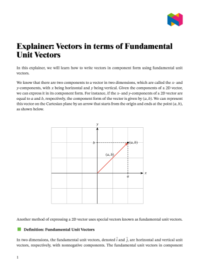 In this lesson, we will learn how to write vectors in component form using fundamental unit vectors.