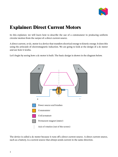 In this lesson, we will learn how to describe the use of a commutator in producing uniform circular motion from the output of a direct current source.