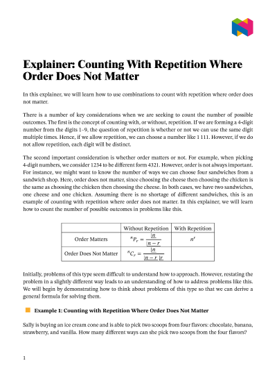 In this lesson, we will learn how to use combinations to count with repetition where order does not matter.