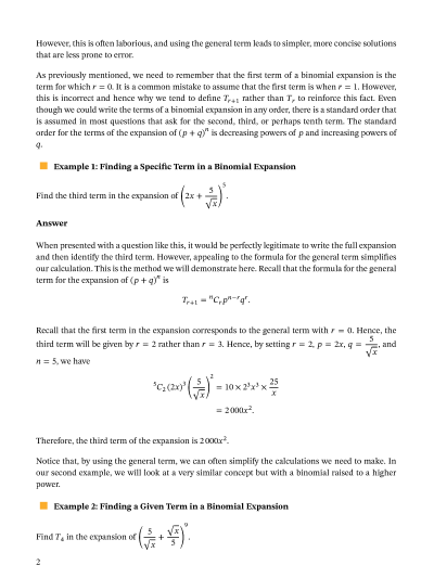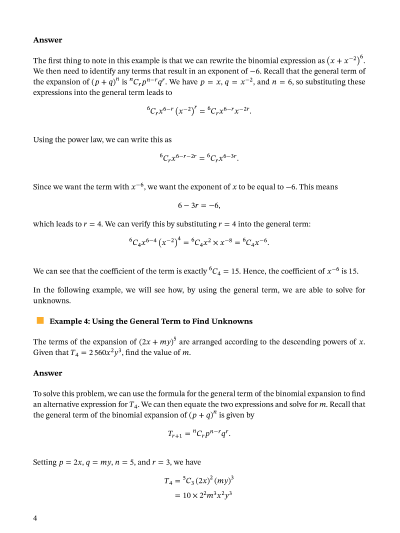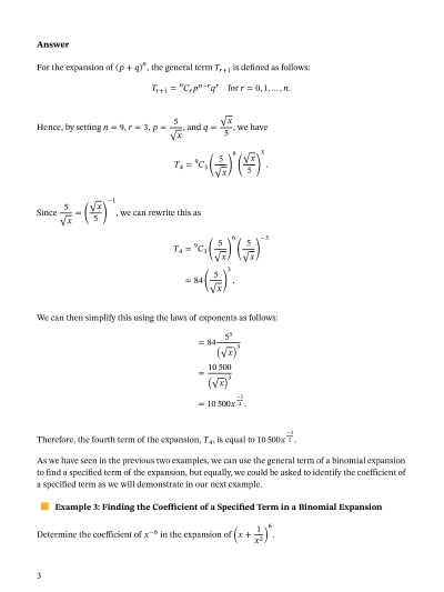 In this lesson, we will learn how to find a specific term inside a binomial expansion and find the relation between two consecutive terms.