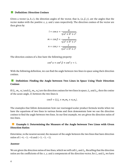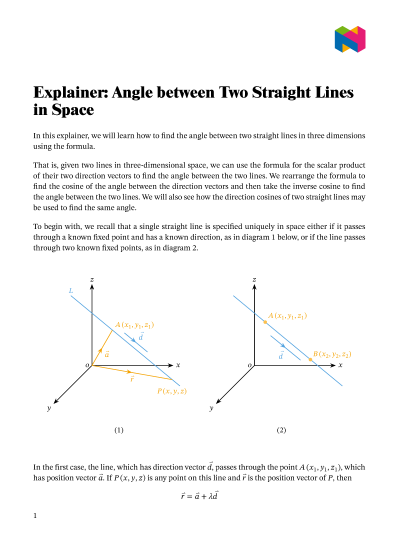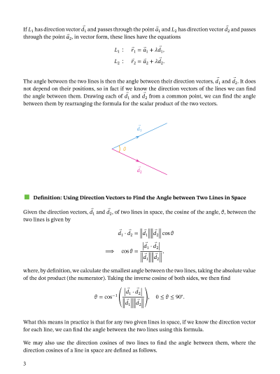 In this lesson, we will learn how to find the angle between two straight lines in three dimensions using the formula.
