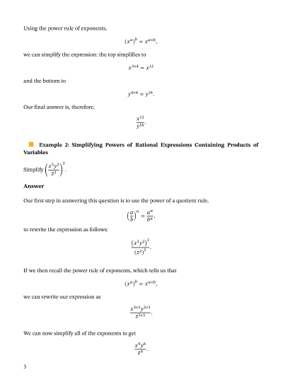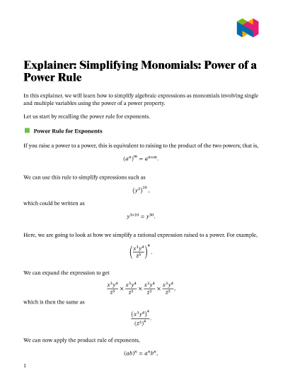 In this lesson, we will learn how to simplify algebraic expressions as monomials involving single and multiple variables using the power of a power property.