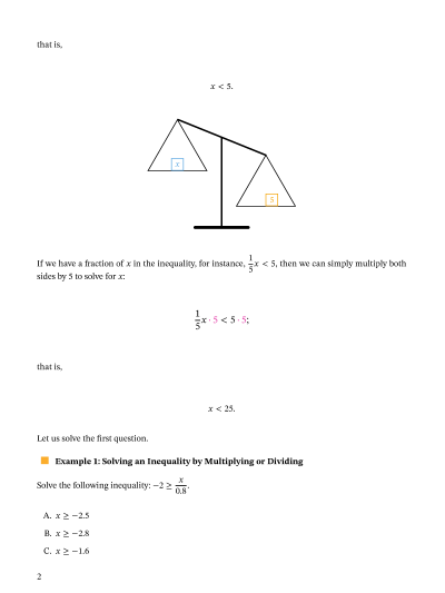 In this lesson, we will learn how to solve one-step linear inequalities by multiplication or division.
