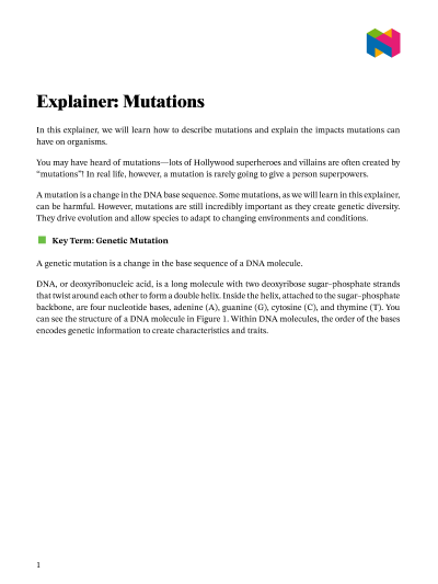 In this lesson, we will learn how to describe mutations and explain the impacts mutations can have on organisms.