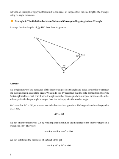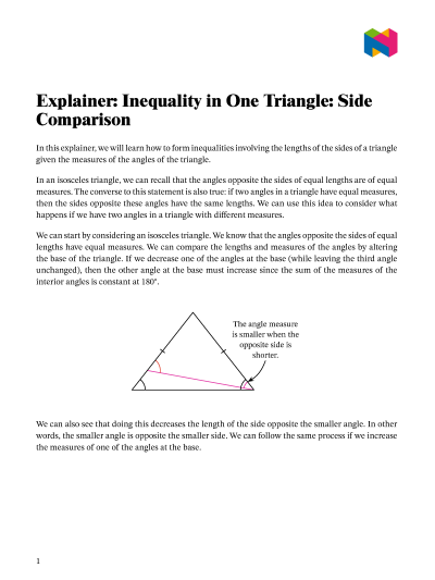 In this lesson, we will learn how to form inequalities involving the lengths of the sides of a triangle given the measures of the angles of the triangle.