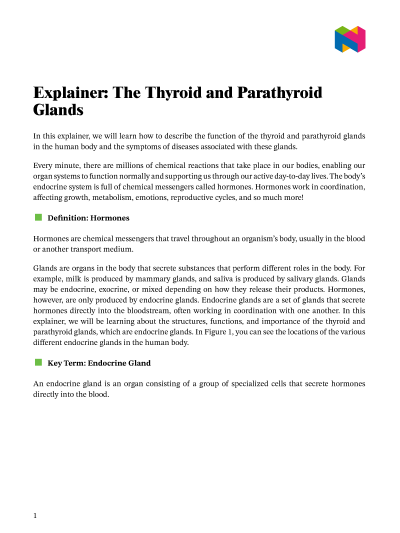 In this lesson, we will learn how to describe the function of the thyroid and parathyroid glands in the human body and the symptoms of diseases associated with these glands.