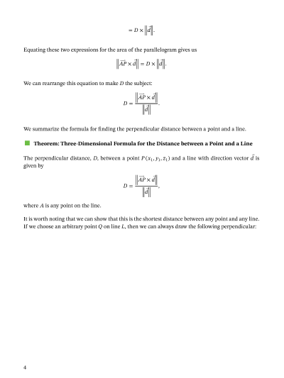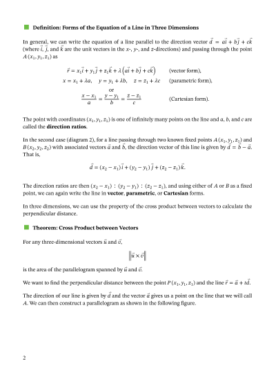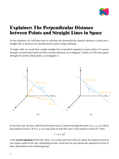 In this lesson, we will learn how to calculate the perpendicular distance between a point and a straight line or between two parallel lines in space using a formula.
