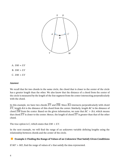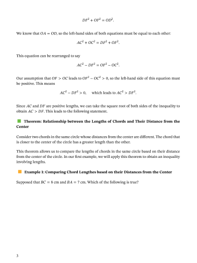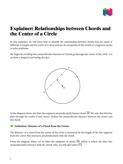 In this lesson, we will learn how to identify the relationship between chords that are equal or different in length and the center of a circle and use the properties of the chords in congruent circles to solve problems.