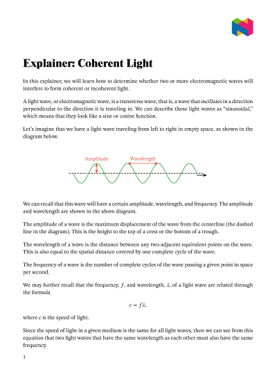 In this lesson, we will learn how to determine whether two or more electromagnetic waves will interfere to form coherent or incoherent light.
