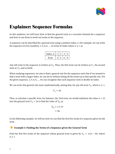 In this lesson, we will learn how to find the general term or a recursive formula for a sequence and how to use them to work out terms in the sequence.