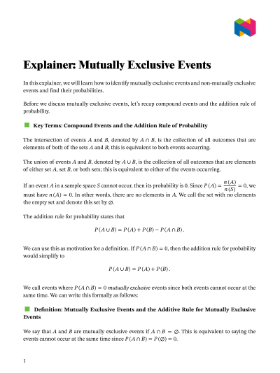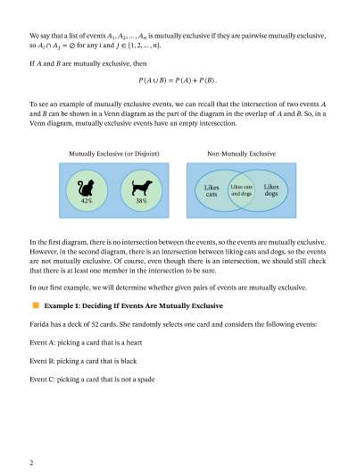 In this lesson, we will learn how to identify mutually exclusive events and non-mutually exclusive events and find their probabilities.